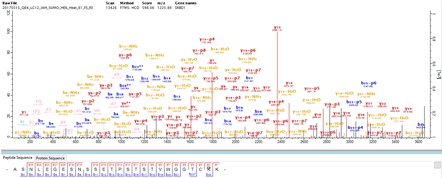 Figure 2. An example of an identified SUMOylated peptide in the MaxQuant viewer, using the MaxSBM workflow.